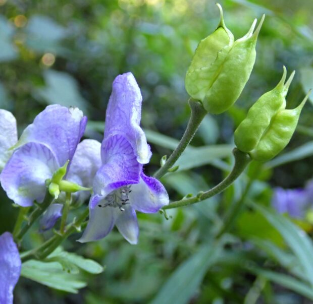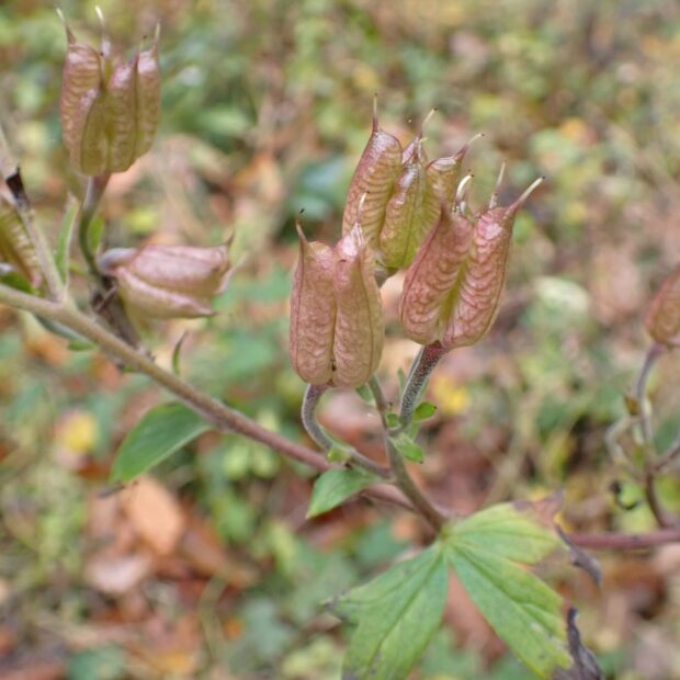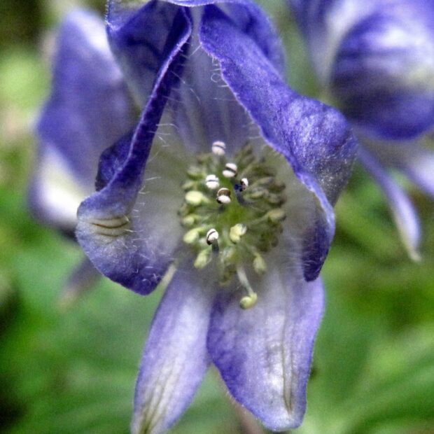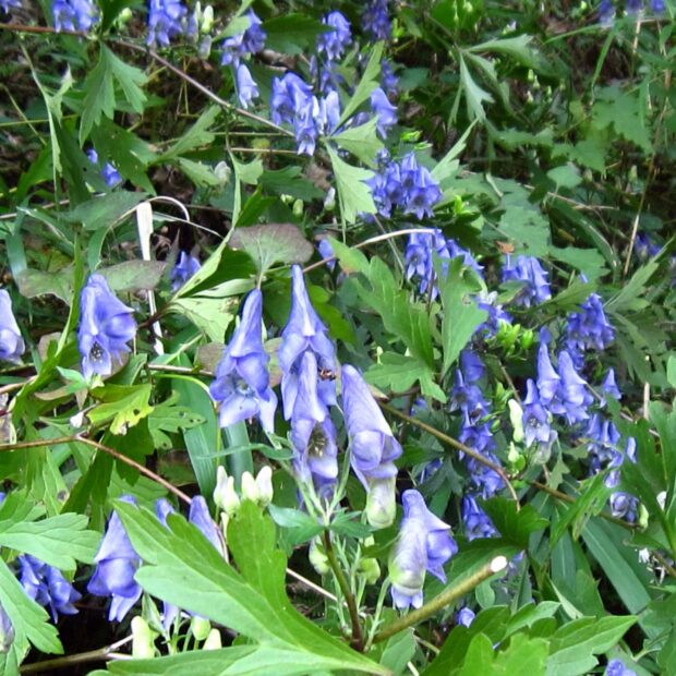 ドクウツギ、 ドクゼリと並んで日本三大有毒植物の一つとされるトリカブトの仲間は日本には約30種が自生しています。 トリカブトの名の由来は、 花が古来の衣装で頭にかぶる鳥兜・烏帽子に似ているから、 または、 鶏の鶏冠(とさか)に似ているからとも言われています。 ツクバトリカブトは筑波山で発見され命名されました。 (HT)
