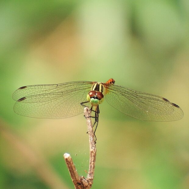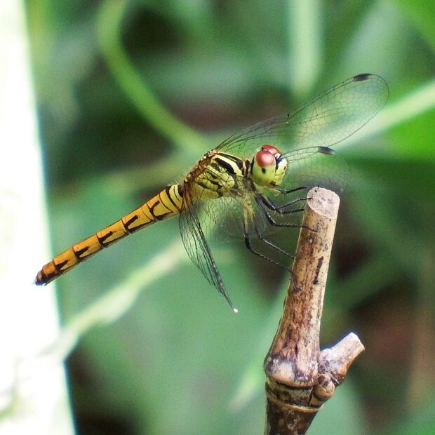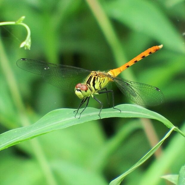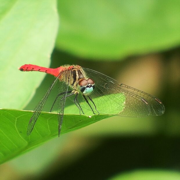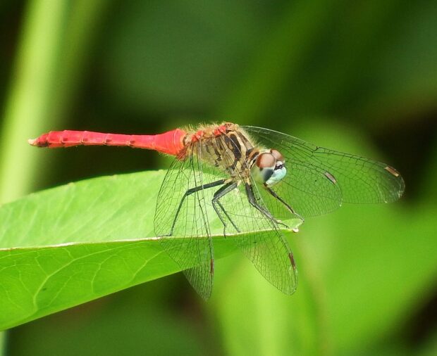 小さなアカトンボ。 オスの青白い顔を、 京の舞妓の化粧に見立てて名づけられました。 水生植物が豊富な池沼、 湿地、 田んぼなどで見られますが、 減少しています。 卵で越冬。