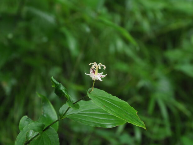 ホトトギスに似て、 山に咲くことが多いのが名の由来です。 ホトトギスより全体ややきゃしゃな感じで、 茎の上部が枝分かれして数個の花が咲きます。