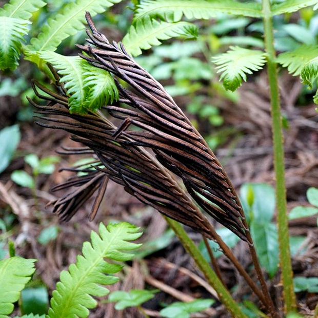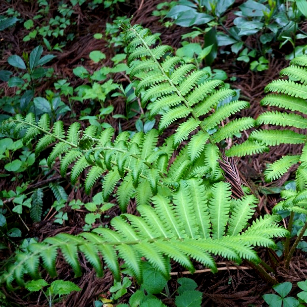 人里近くの林内や林縁によく見られる大きなシダです。 ガンソクは山菜になるクサソテツ(コゴミ)の別名で、 植物名でイヌは主に劣っているという意味があります。 つまり、 この場合は食べるのに適さないという意味です。