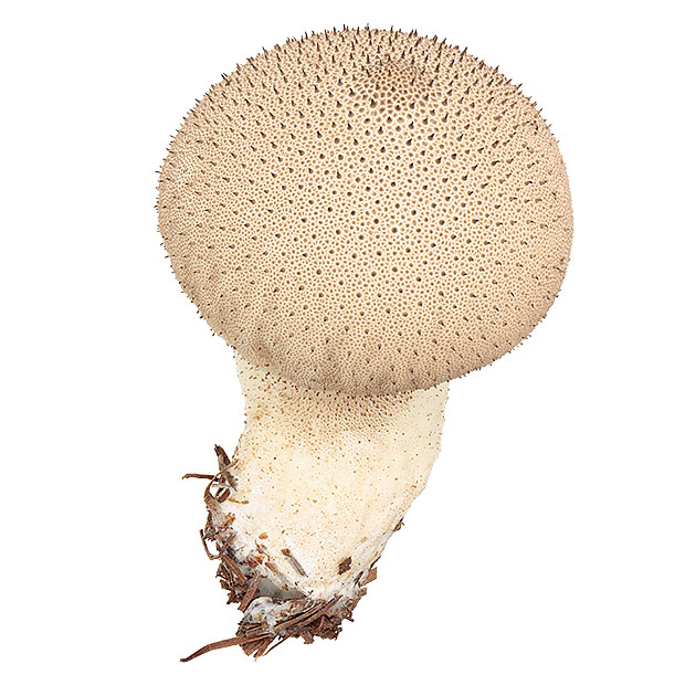 球形の頭に柄がついて、 森でであうとまるで、 もののけ姫に登場するこだまみたいです。 成熟したホコリタケをつまむと、 ほこりのように胞子がでてきます。