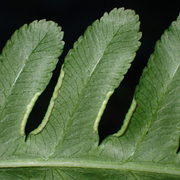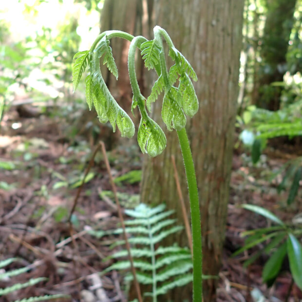 近ごろニホンジカの増加による食害によって多くの種類のシダが数を減らし、 絶滅寸前まで追い込まれるものもでてきました。 ところが、 ナチシダなど一部のシダはニホンジカが好まないので逆に数が増え、 あちこちで見るようになりました。