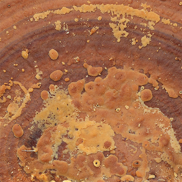 ほうろくってほとんど見たことがないのではないでしょうか? スマホで検索するとホウロクタケみたいな素焼きの皿がヒットします。 コルクのようなかたいきのこで、 いったん生えると1年以上のこっています。