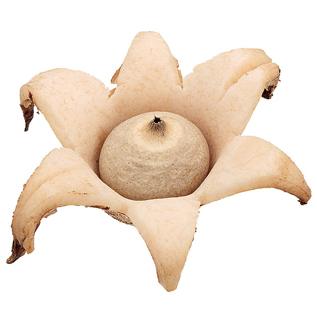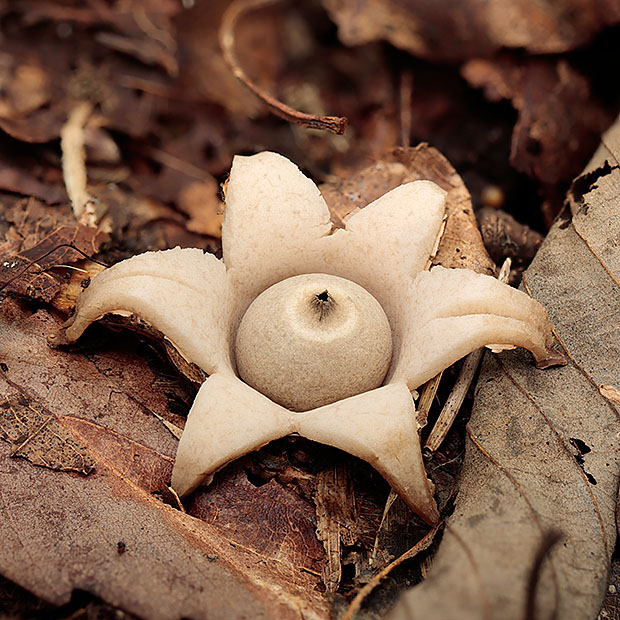 ツチグリのように星形をしたきのこです。 ツチグリと形は似てますが、 別のグループです。 ヒメツチグリ属のなかまは、 ツチグリのように雨がふるたびに皮が開いたり閉じたりしません。 いちど開いたら閉じません。