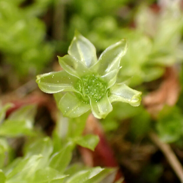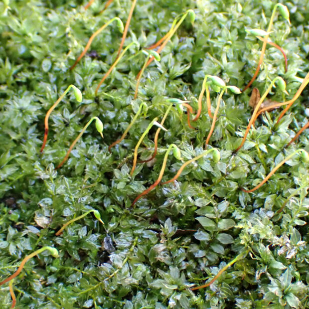 湿った土上に多いコケ植物。 肉眼でもはっきり見える大きくてきれいな葉が特徴です。 身近な公園によく生えていて、 コケ庭にも用いられます。