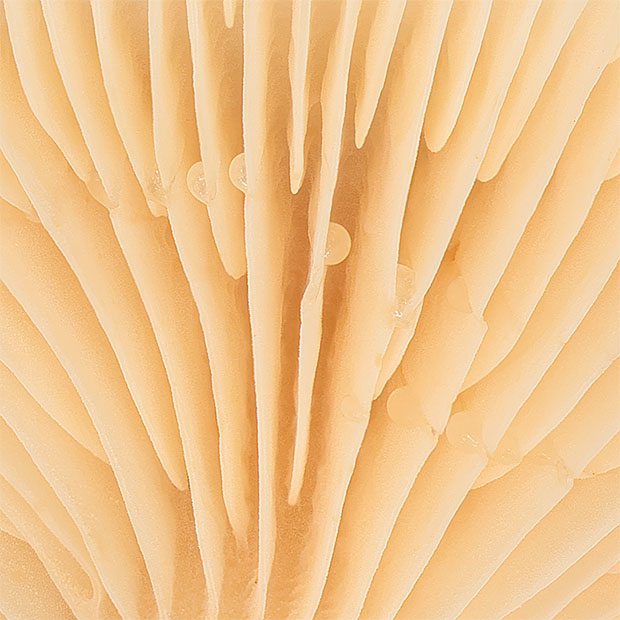 クリーム色や灰色をおびた、 傘にぬめりのあるきのこです。 雨の降ったあとは、 いっそうぬめりが強くなり、 傘がきらりと光って見えます。 傷つけると半透明の乳液がでます。 肉は少し辛味があります。