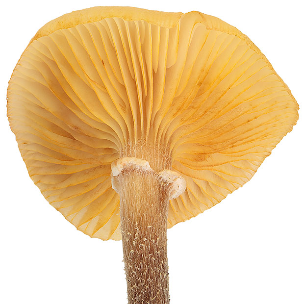 晩秋に枯れ木から束になってはえるきのこです。 ナラタケモドキに似ています。 ナラタケは柄の途中に付着物がありますが、 ナラタケモドキは柄の途中に付着物がありません。