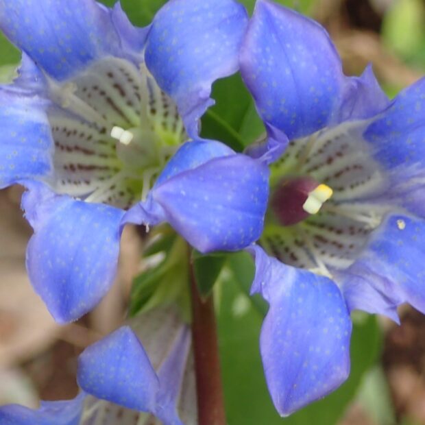 東海~関西地方の湿地で見られる葉が細いリンドウはホソバリンドウです。 花屋で切り花として売られているのは、 本州中部以北から北海道で見られるエゾリンドウを栽培したものです。 エゾリンドウは葉の裏が白っぽく、 葉の縁はざらつきません。 中国にあるのはトウリンドウです。