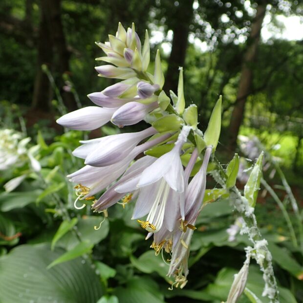 コバギボウシは、 葉が小型で低地の山地や湿地でも見られます。 ギボウシの仲間はホスタとも呼ばれて様々な園芸品種がつくられています。