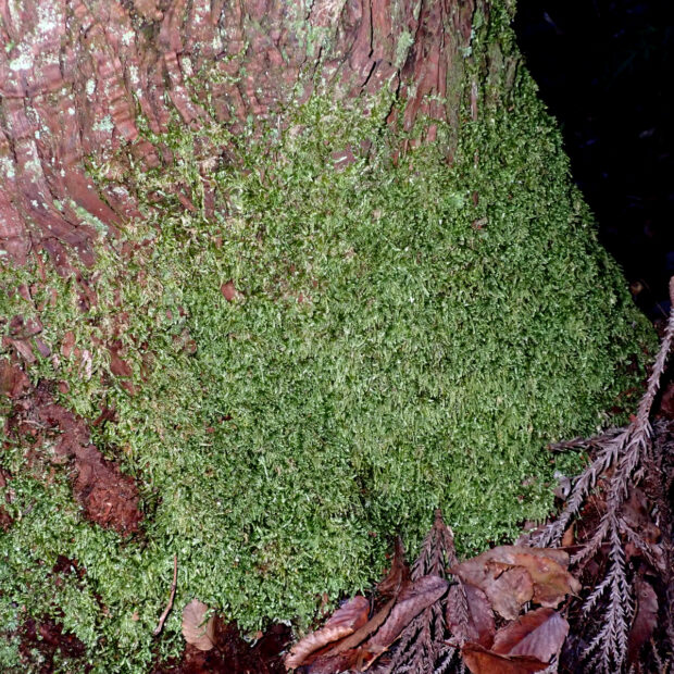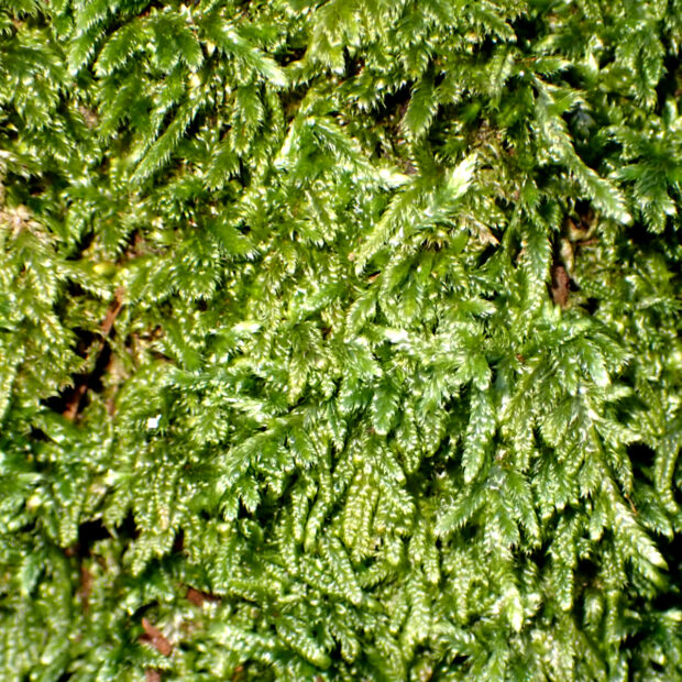森の中のスギやモミなどの根元付近によくマット状に生えているコケ。 鏡ほどではありませんが、 光を当てると反射してギンギラギンに輝きます。