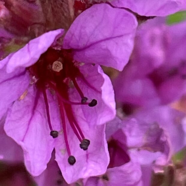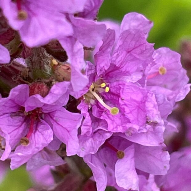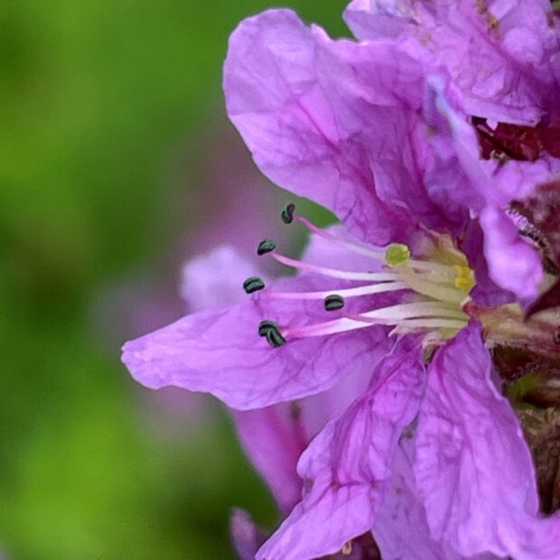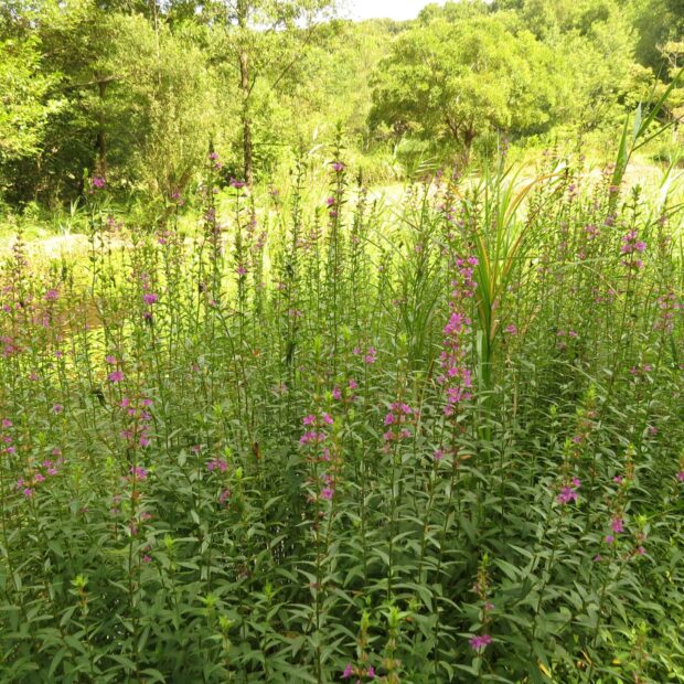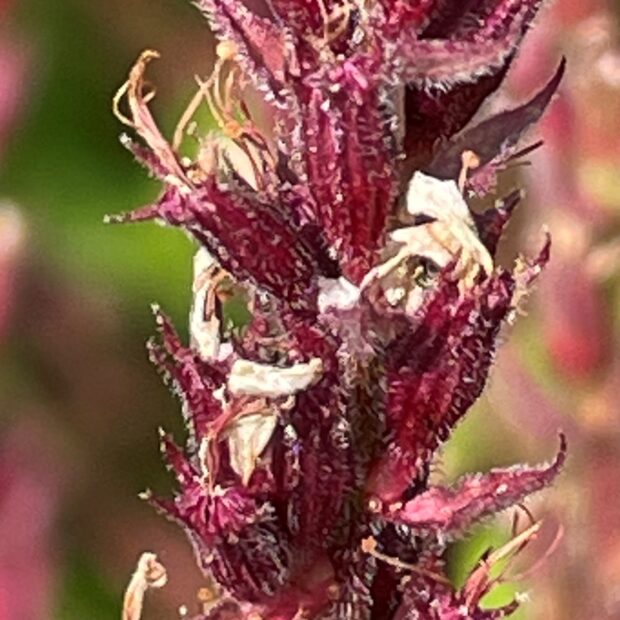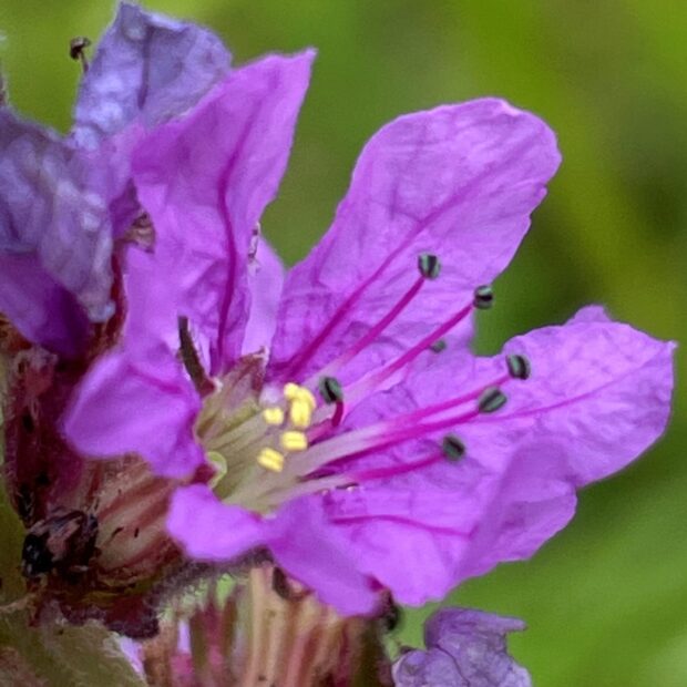 ミソハギによく似ていますが、 全体に短毛があります。 広く世界の温帯地域の湿地に群生する植物です。
