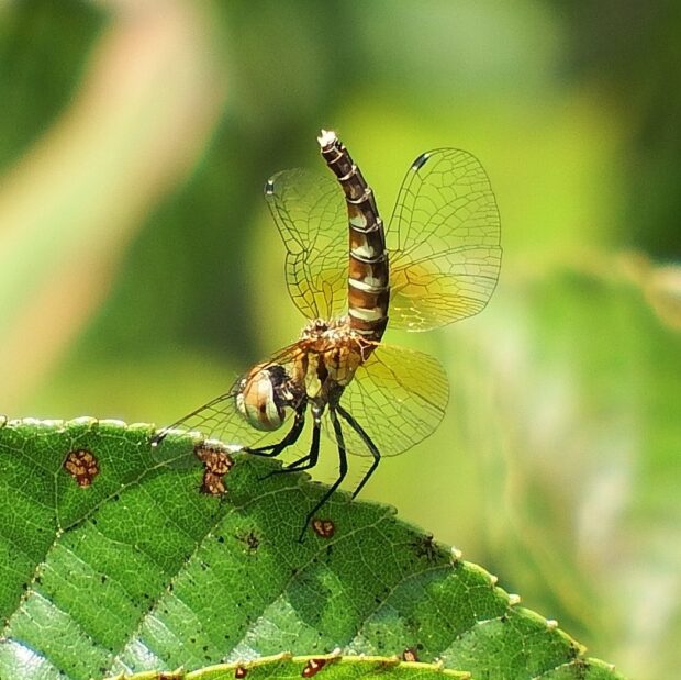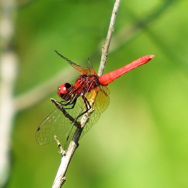 トンボ科の仲間。 世界で最も小さいトンボの一つ。 オスは成熟すると真っ赤になり、 メスは赤くならず、 しま模様。 丘陵地から山地の植物の繁茂する湿地で見られますが、 分布は局所的で減少しているトンボです。