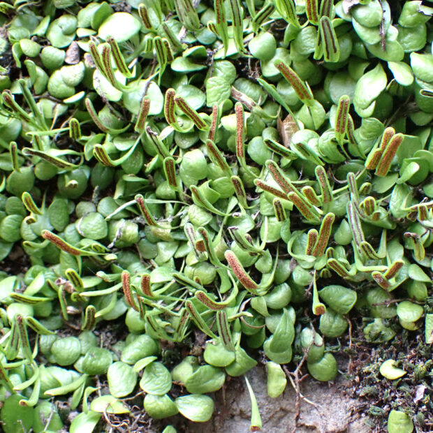 マメヅタはシダに限れば日本で似た種類がほとんどないので見分けやすいです。