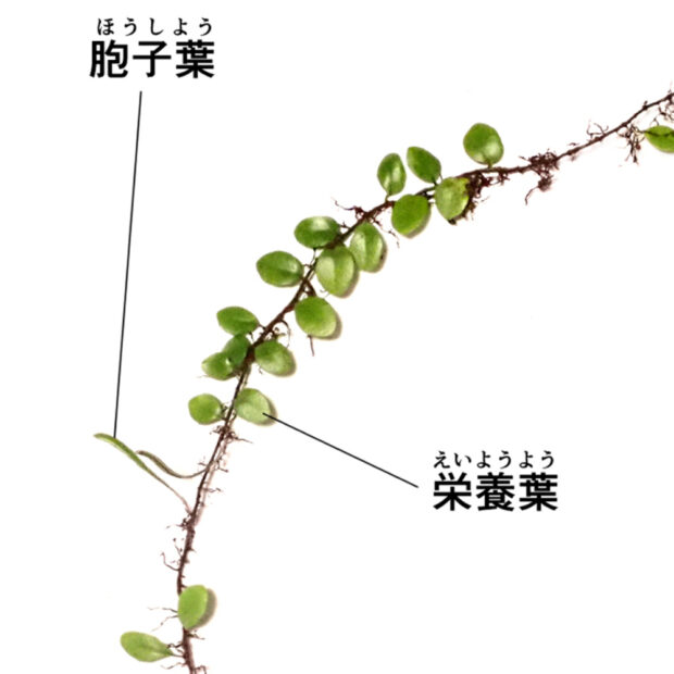 暖かい地域の林内で、 岩や木の幹を覆っていることが多い植物。 こんな姿ですがシダの仲間で、 花は咲かず胞子によって数を増やします。
