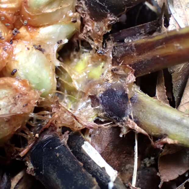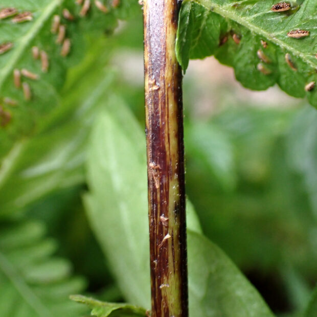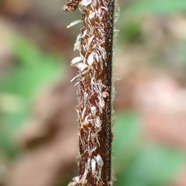 ●ハクモウイノデ・・・葉柄に白い毛や鱗片がびっしりつきます。 葉柄の基部は粘液に覆われません。 低山に多いです。