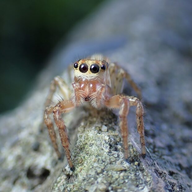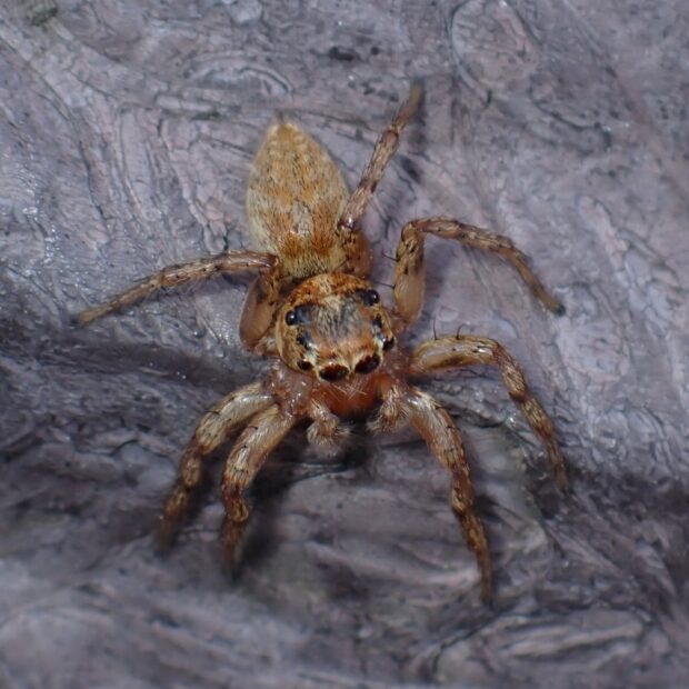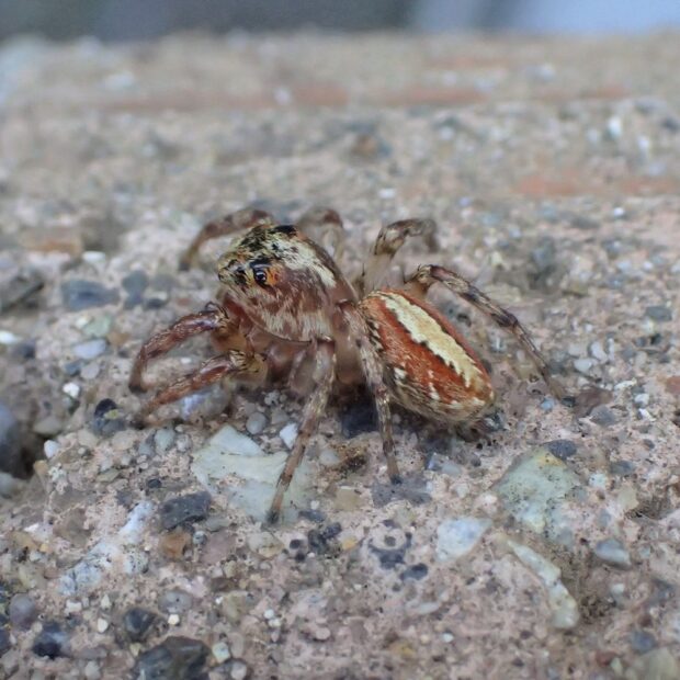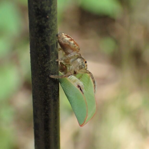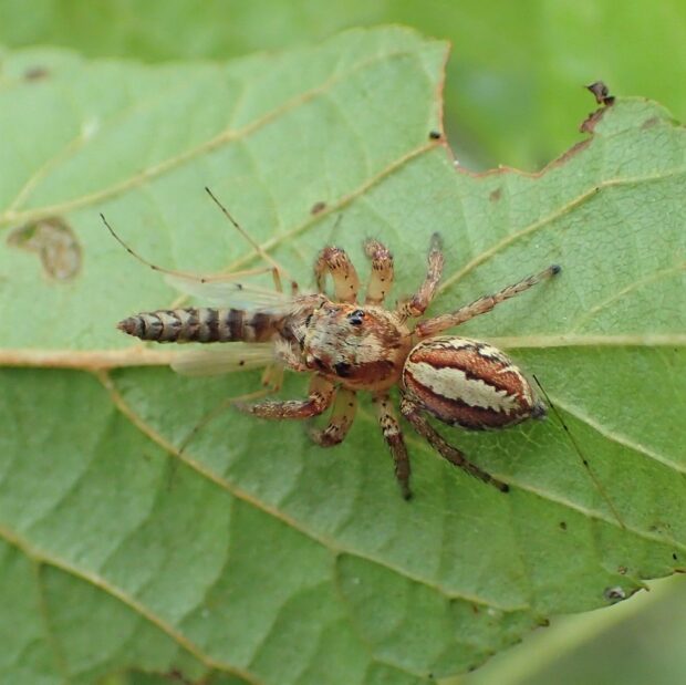平地~山地まで広く生息し、 草地や木の上で普通に見られるハエトリグモ。 名前は発見者のクモ学者W.デーニッツにちなんだもの。 ハエトリグモは網ははらず、 歩き回りながら獲物にとびつきます。