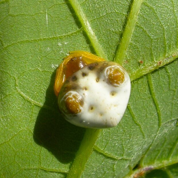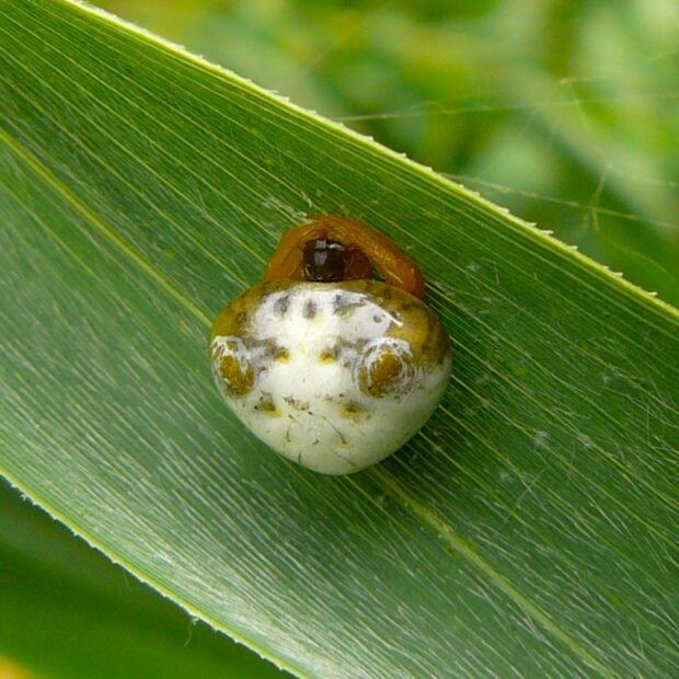 葉裏にひそむ鳥のフンのようなクモ