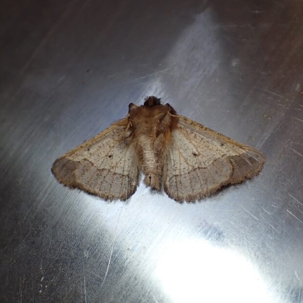 晩秋に現れるエダシャクの仲間。 前ばねは二色に分けられ、 模様は特徴的。 触角はオスは羽毛状、 メスは糸状です。 幼虫は、 春、 様々な広葉樹で普通に見られ、 くるっと丸まるポーズがおもしろいです。