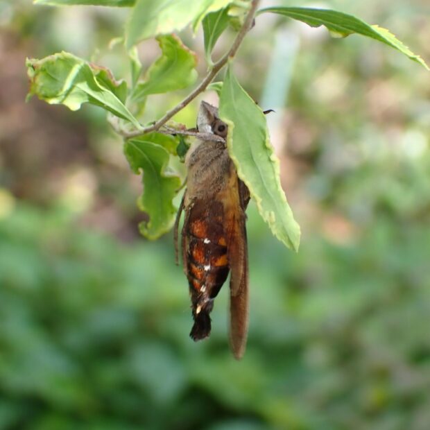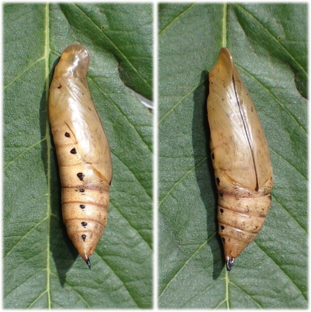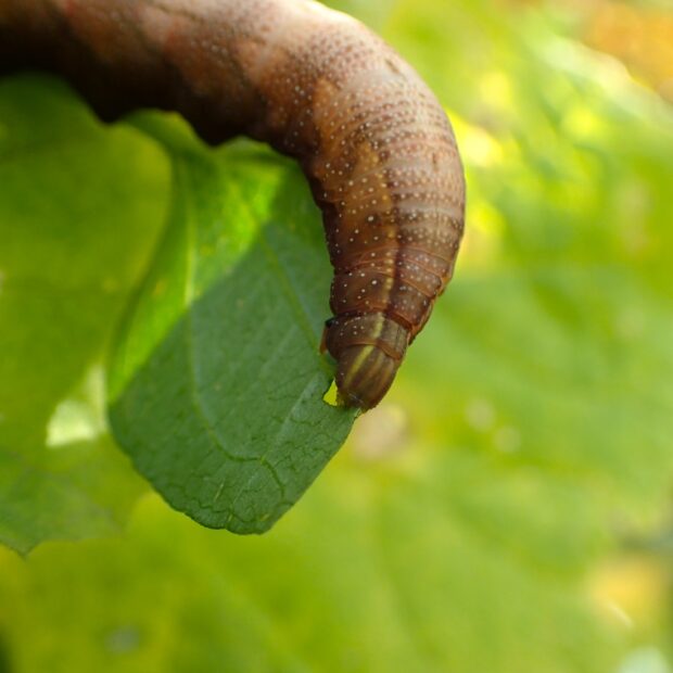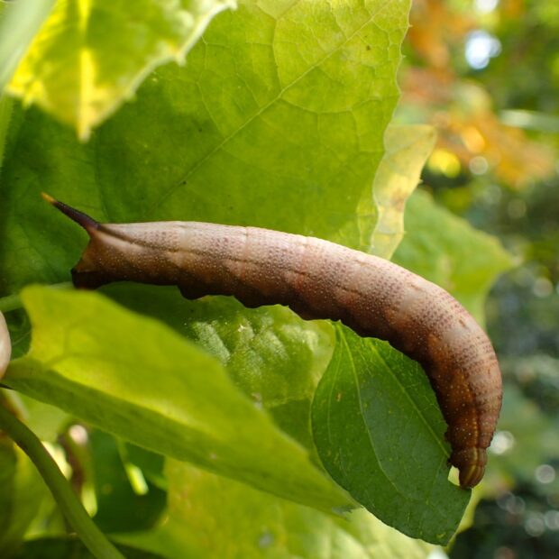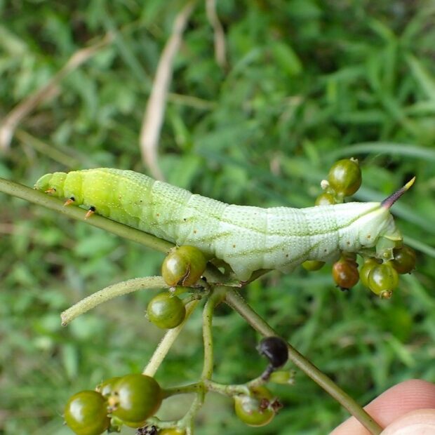 緑色の幼虫。 ヘクソカズラでよく見つかる。