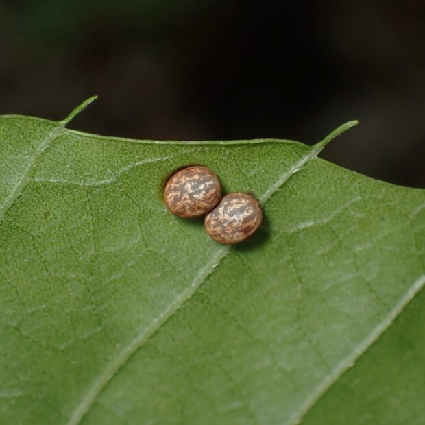 • オス。 後ばねの尾状突起はメスより長い。 これは右側がない。 。 はねには1個ずつ紋がある。