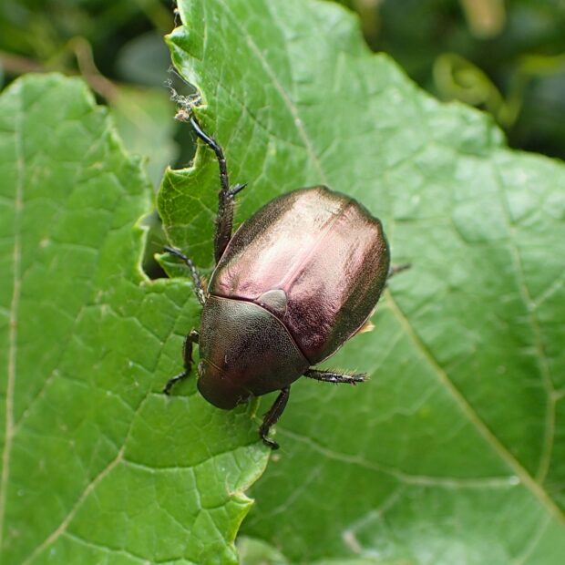 銅色をしたコガネムシの仲間。 「ブイブイ」はブンブン飛ぶ虫という意味の漢字からきているとのこと。 普通に見られますが、 東京近郊では、 アオドウガネが増え、 ドウガネブイブイは減少しています。