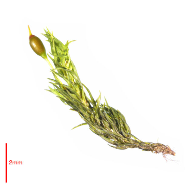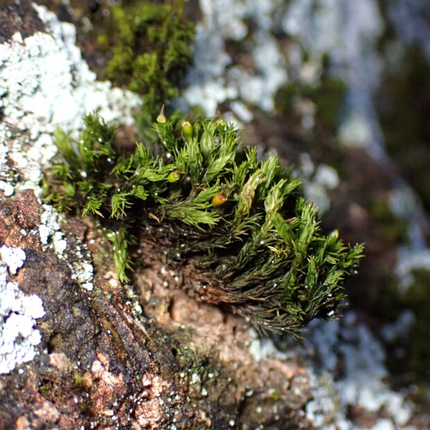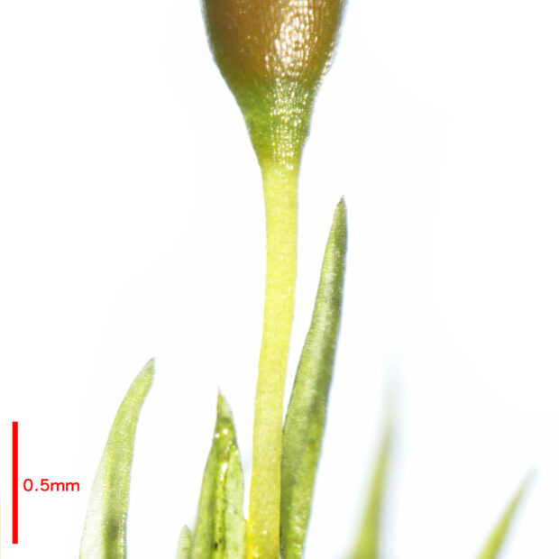主に山地に生えるスナゴケの仲間。 「朝鮮(ちょうせん)」とつきますが、 日本にも元から生えています。 葉先にごく短い透明な部分があることなどが特徴です。