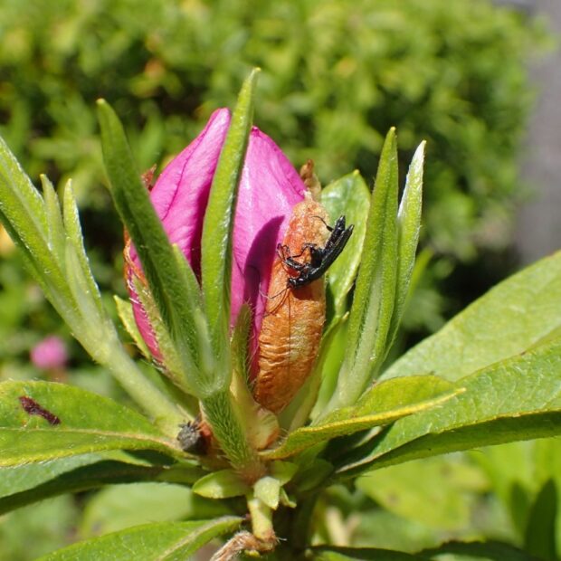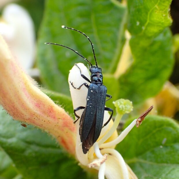 カミキリモドキの仲間は体液にカンタリジンを含むものが多いです。 カンタリジンを含む体液に触れると、 皮膚に炎症をおこし、 水ぶくれができることがありますので、 触らないようにしてください。