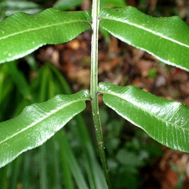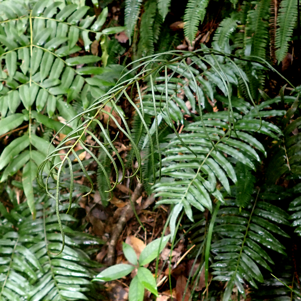 暖かい地域の林内にたくさん生えているシダです。 光合成をする葉はキジの尾羽のような形をしています。 胞子を飛ばす葉はとても細くて、 夏ごろに出します。