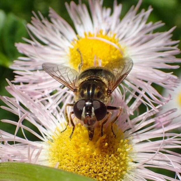 るり色に輝く美しいハナアブ