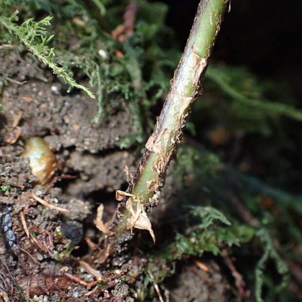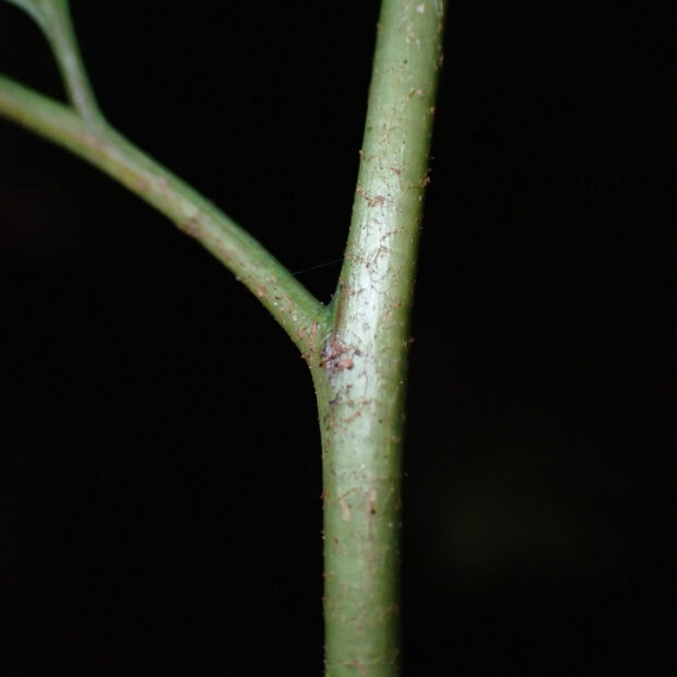 暖かい地域の林内に多いシダです。 多くのカナワラビ類の葉は金属のようにテカテカしていますが、 本種はあまり光沢がありません。 根茎は短くはって群生せず、 大きめの葉を1,2枚だけ出していることが多く、 いわばシダ界の一匹狼みたいです。