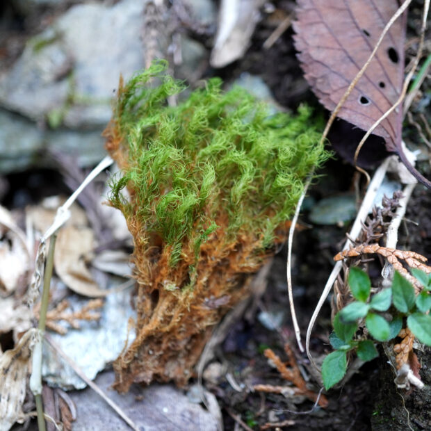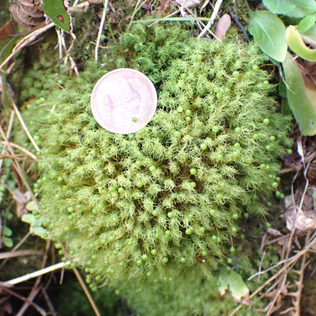 春に出る目玉のような丸くてかわいらしい蒴が印象的なポピュラーなコケ。 コケ好きからは”タマちゃん”、 ”目玉おやじ”、 英語圏ではリンゴにちなんで”アップルモス”と様々な愛称で親しまれています。