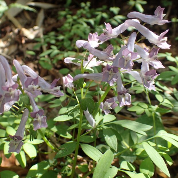 ジロボウエンゴサクと同じくスプリング・エフェメラル(春植物)です。 花の色や葉の形には変異がありますが、 茎にある苞葉に切れ込みがあるので見分けられます。 ジロボウエンゴサクより、 やや山地に見られることが多いです。