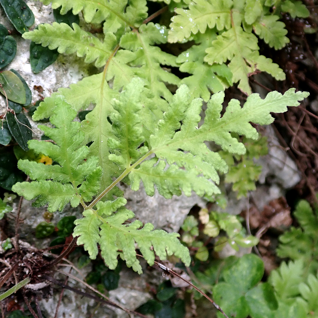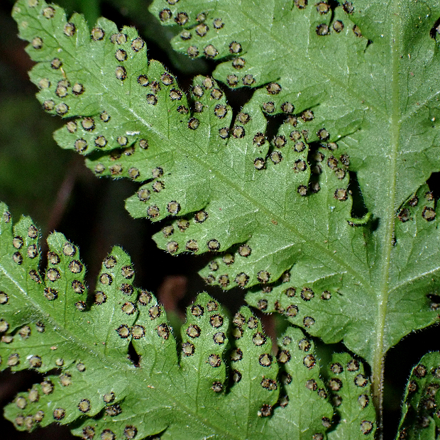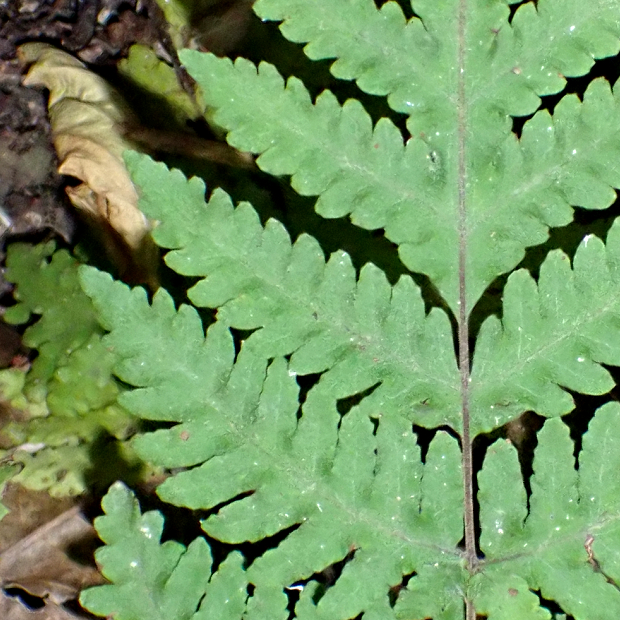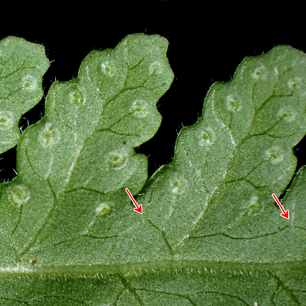 側脈は赤矢印のところでとなり同士がくっつく。 これが繰り返されて一列の網目をつくり、 太い脈の両脇に1本の長い線があるように見える。