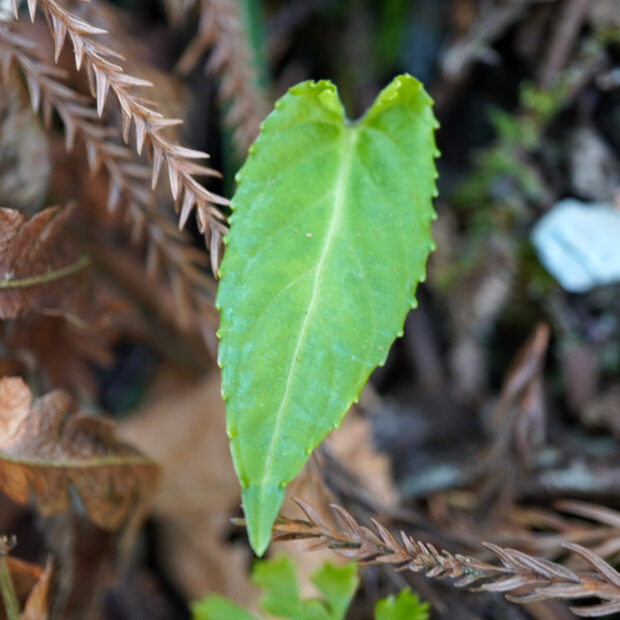 山地の湿った林内、 特に太平洋側によく見られるスミレ類で、 その名の通り葉は細長いです。 スミレサイシンなど多くのスミレと同様に食用にもなります。 (SI)