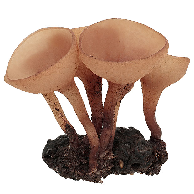 地面におちたクワの実に菌核をつくります。 クワの花が咲く春になると菌核からきのこが生えます。 近くにキツネノヤリが生えることがあります。