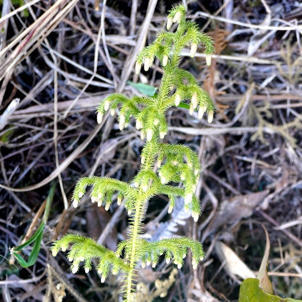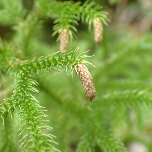 暖かい地域に多いヒカゲノカズラの仲間のシダ植物。 直立茎の枝先からは胞子のう穂をたくさん垂らします。 名前は湿った場所を好み、 スギに似ていることに由来します。