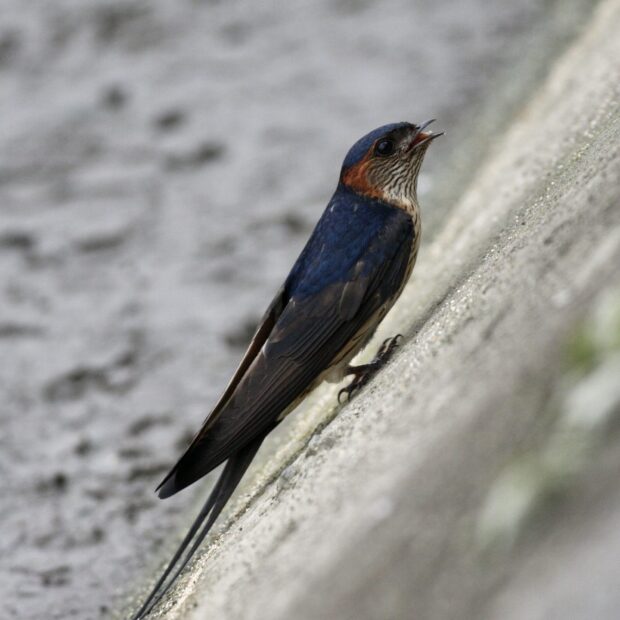 名前の通り腰は赤く、 目の後ろあたりから頭の後ろまで赤色です。 トックリを半分にしたような口が窄んでいる巣を作るため、 スズメなどの他の鳥類に利用されたりもします。