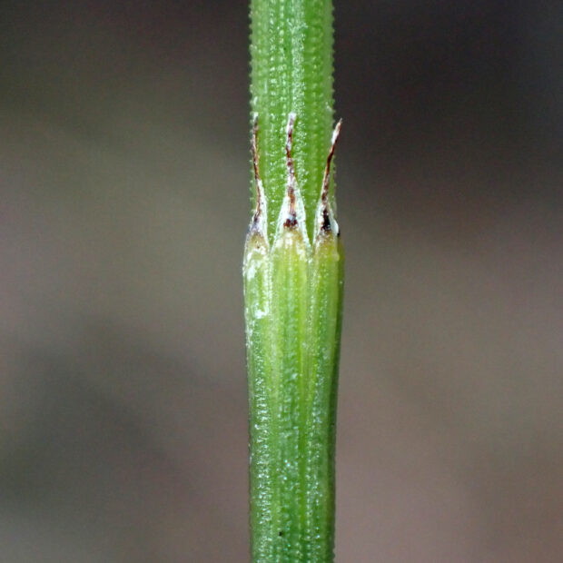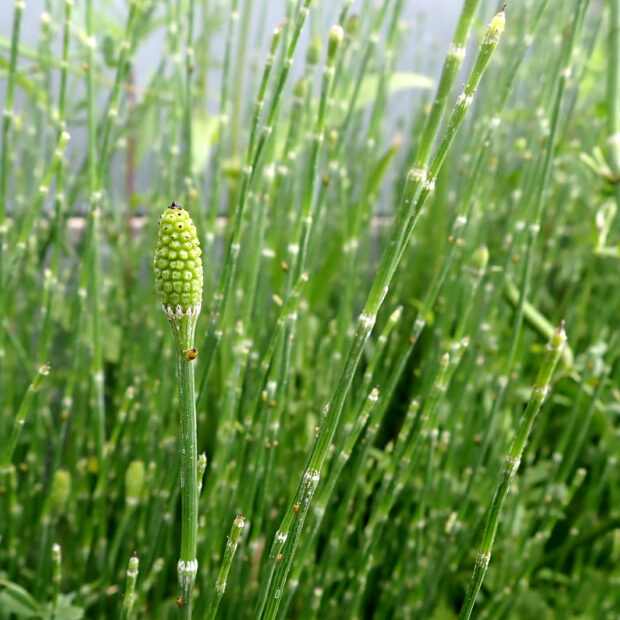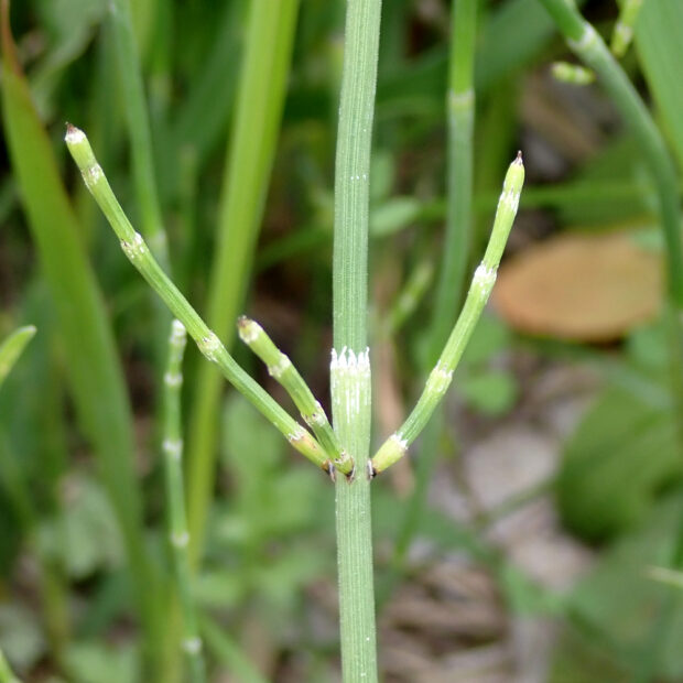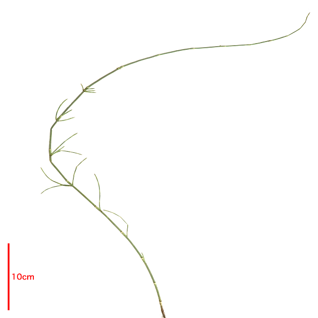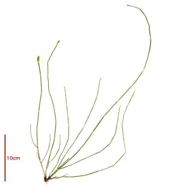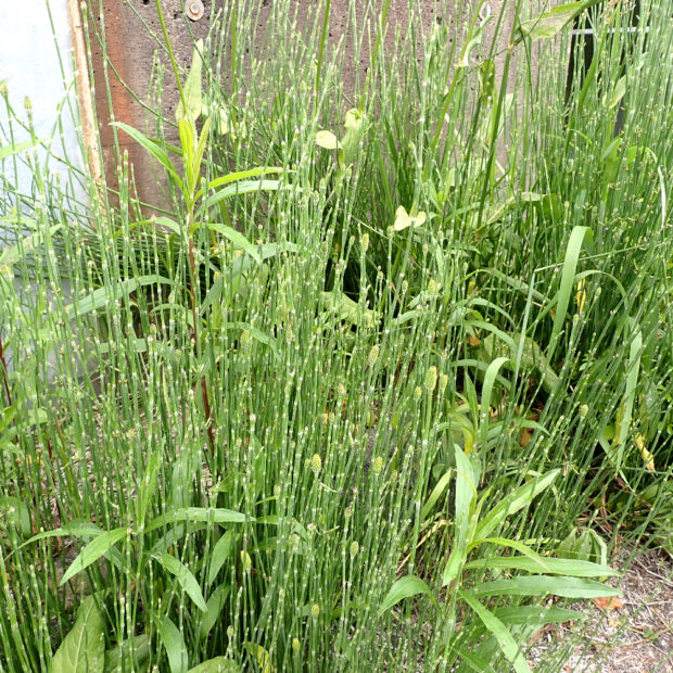 道ばたや河川敷などでよく見られるシダ。 スギナ(ツクシ)にしては細長くて枝分かれが少なく、 庭園によく植えられるトクサよりもひょろひょろな姿をしています。