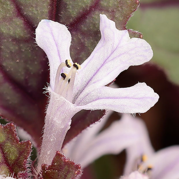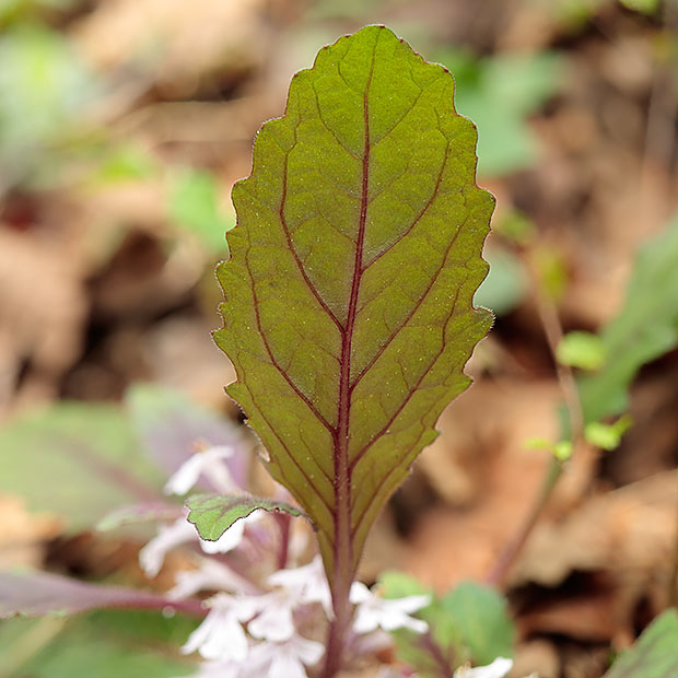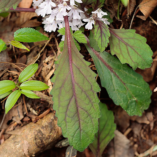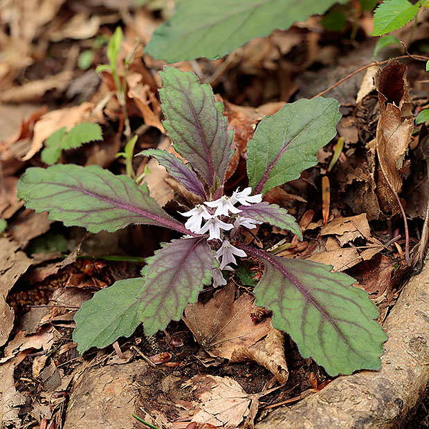 名前の通り筑波山でよく見られますが、 太平洋側の他の地域でも見られます。 紫色の模様にある葉が目立ちます。