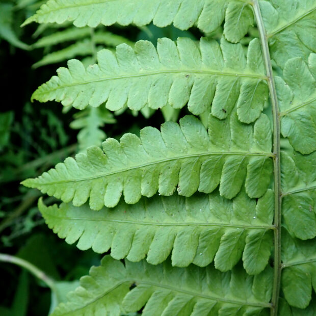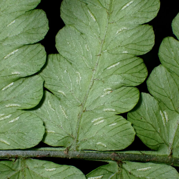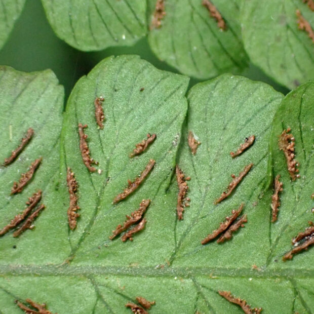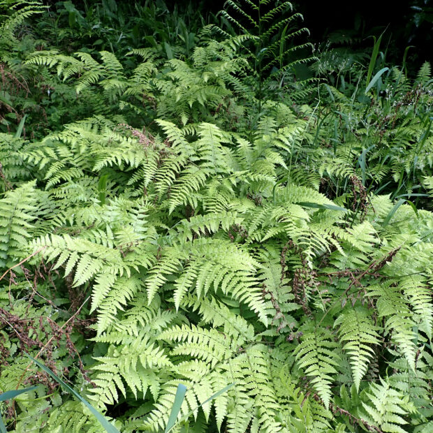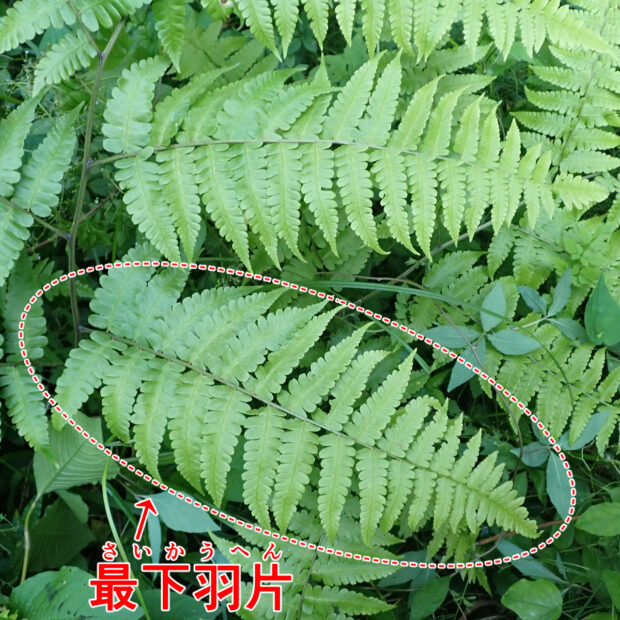 暖かい地域の林内などに群生していることが多い大きなシダです。 似た仲間が多くありますが、 本種は胞子のう群が葉のフチと脈の中間につき、 葉柄基部に茶色の鱗片がわずかにあることなどが特徴です。 名前は鹿児島市の城山に由来します。
