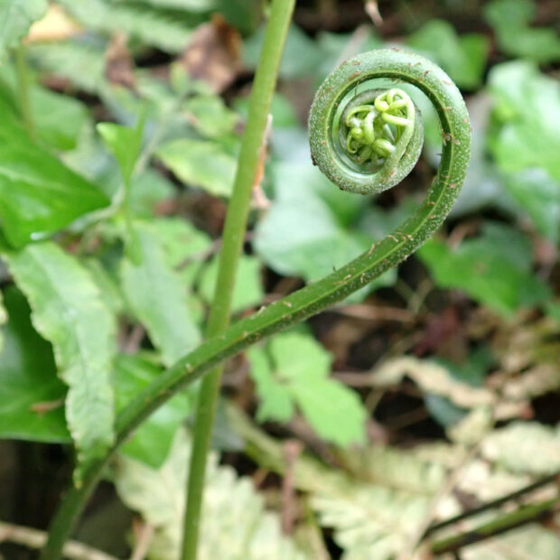 山地の特に谷沿いに生える大きめのシダです。 葉は深緑色で、 羽片先が急に細くなること、 葉脈は網目を作らないことなどが特徴です。 ゼンマイという名がついていますが、 山菜で有名なゼンマイとは分類が大きく異なります。