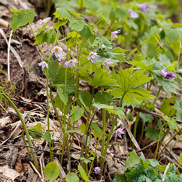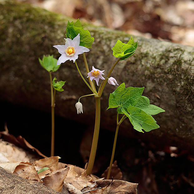 Podophyllumはミヤオソウ属のことですが、 日本に自生する種はありません。 ミヤオソウは中国原産で、 八角蓮(ハッカクレン)の名で植栽されていることがあります。