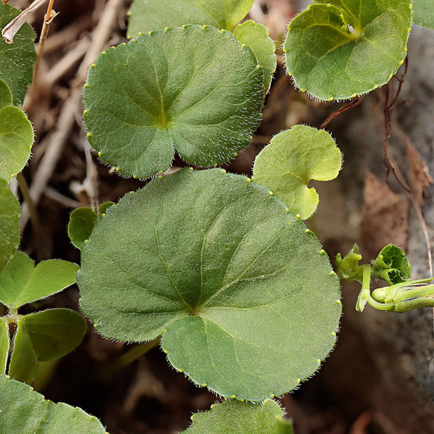 黄色の花を高山で咲かせるスミレです。 葉の形が円形で馬のつめにたとえました。