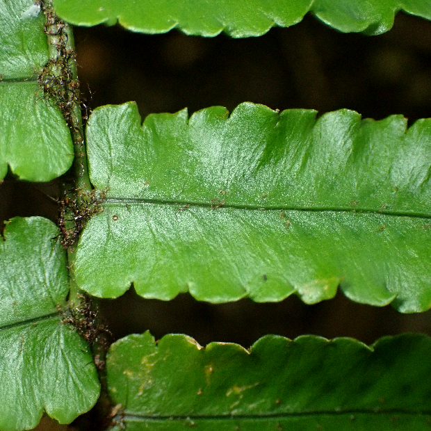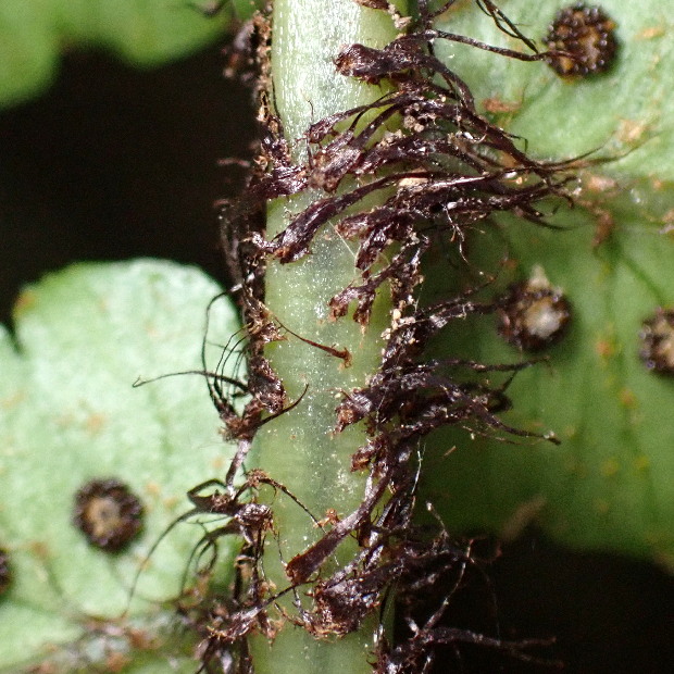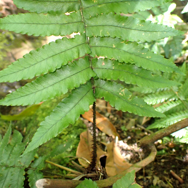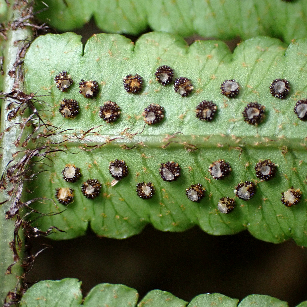 筑紫(つくし : 九州の古い呼び名)の通り、 九州に多いシダです。 イワヘゴによく似ていますが、 葉の下部の切れ込みは少し短くなるくらいで、 包膜は発達が悪いので見えにくいです。