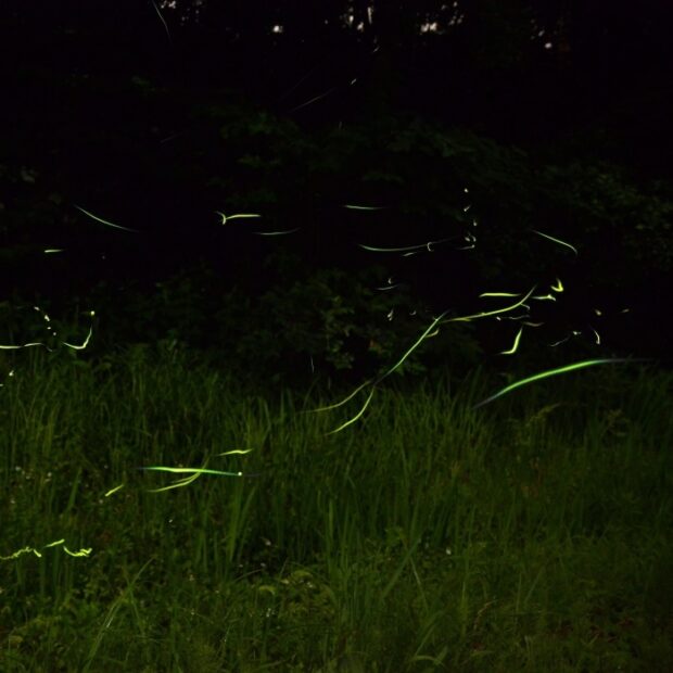 林縁を流れる川の周辺で見られる大型のホタル。 夜になるとオスは飛び回りながら、 明るい光を出します。 メスは葉にとまり小さな光を出します。 東日本と西日本で光る間隔が異なり、 東日本は約4秒、 西日本は約2秒とのこと。 日本固有種。