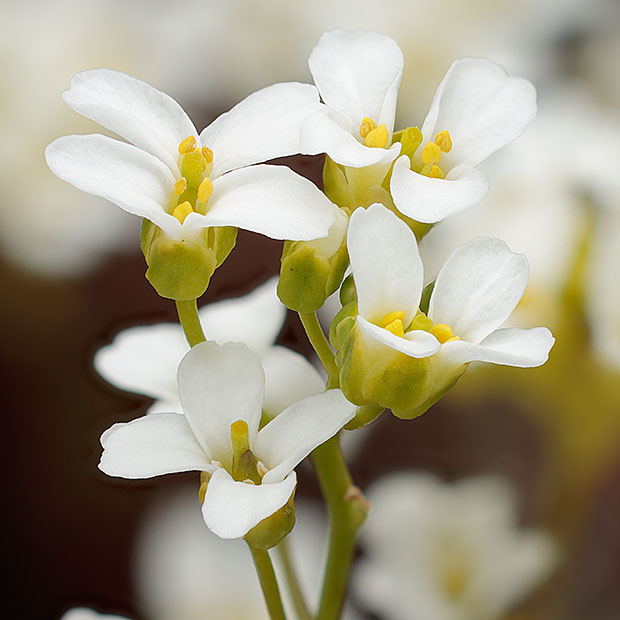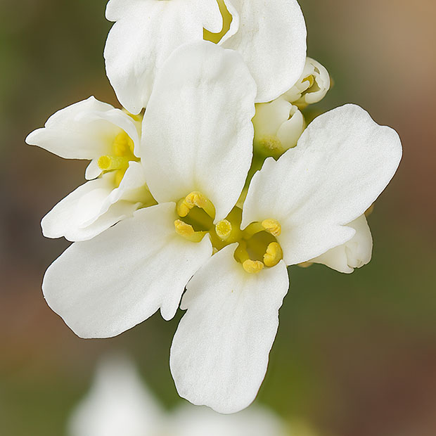 ナズナのように4枚の白い花びらをもつ花を咲かせます。 雲の間から見えるような高山にあります。 牧野富太郎が学名をつけました。