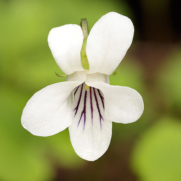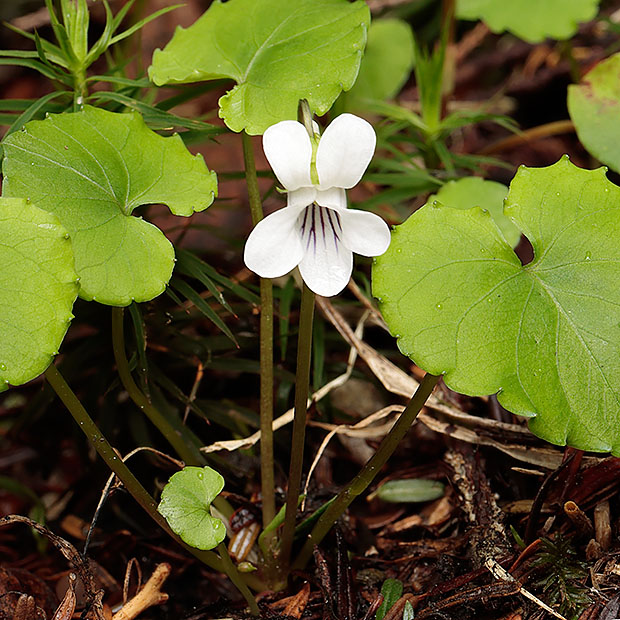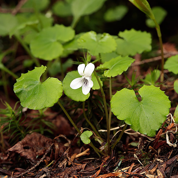 亜高山帯の針葉樹林で、 小さな白い花を咲かせます。 ウスバスミレという和名は牧野富太郎が名づけました。