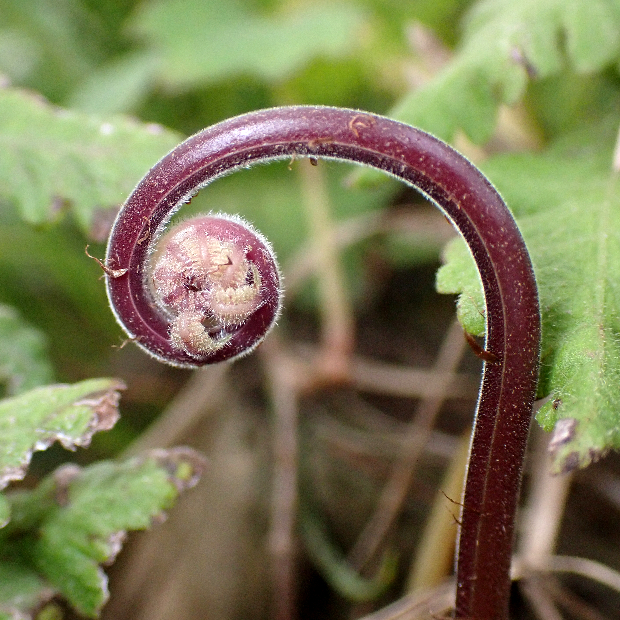 元々ホシダの仲間の多くは人家近くなどの明るい場所を好んで生えます。 さらに近年では地球温暖化のほかヒートアイランド現象によって都市部は年中暖かく、 このような環境はイヌケホシダの好みとマッチしています。 加えてこのシダは一年中胞子をまく性質をもち、 人間世界に偶然にもうまく馴染むことができたシダといえるかもしれません。