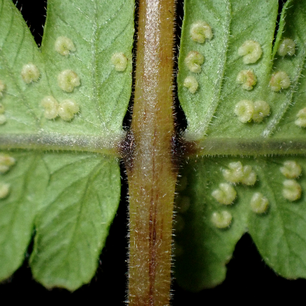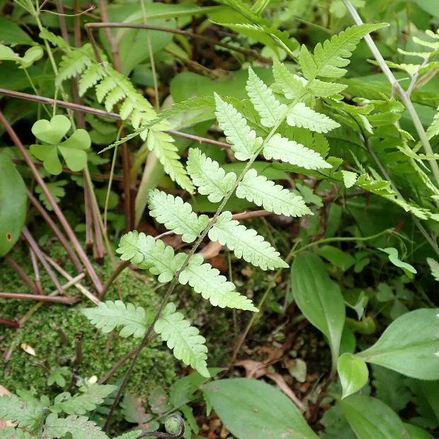 暖かい地域に分布するシダで、 都市部では雑草のごとく庭にもよく生えます。 近縁のホシダに似ていますが、 葉はふつうツヤがなくて毛が多く、 葉先があまり急に細くならず、 裂片の先があまり尖らず、 包膜に毛が多く、 根茎が短くて密に葉を立ち上げます。 また、 葉は下ほど細くなることが多いです。 名前はより南方に生えるケホシダっぽいけど異なる(植物名での犬は別種・劣っているの意味)ことにちなみます。