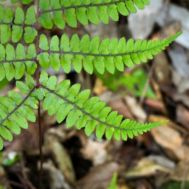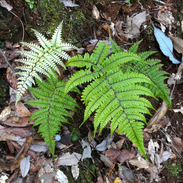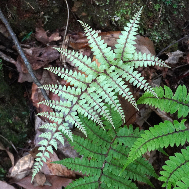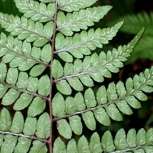 胞子のう群は楕円形で、 少しカマ状のことがある。 中心の脈寄りにつける。